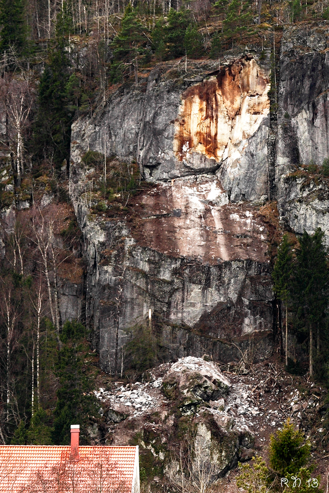 Reidar Nordkveldemoen er alltid ute med kameraet og 1. september i år tok han et oversiktbilde av Jordstøyp-åsen i kvelde. I går kveld løsna en stor steinblokk i Jordstøyp og tok med seg alt som sto i dens vei og stoppa først nede ved RV40.