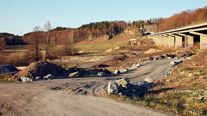 Nå er det snart full aktivitet med bygginga av den nye miljøtunnellen ved Bøkeskogen og Kilen. For å komme ut til Hundeklubben, Fresjeborgen og Kilen er det anlagt en midlertidig vei fra Dalheimveien, langs den gamle E18 og under denne og ut til Kilen.
