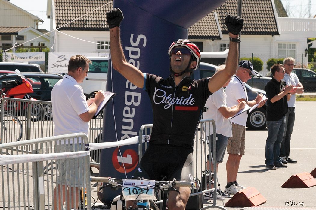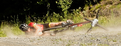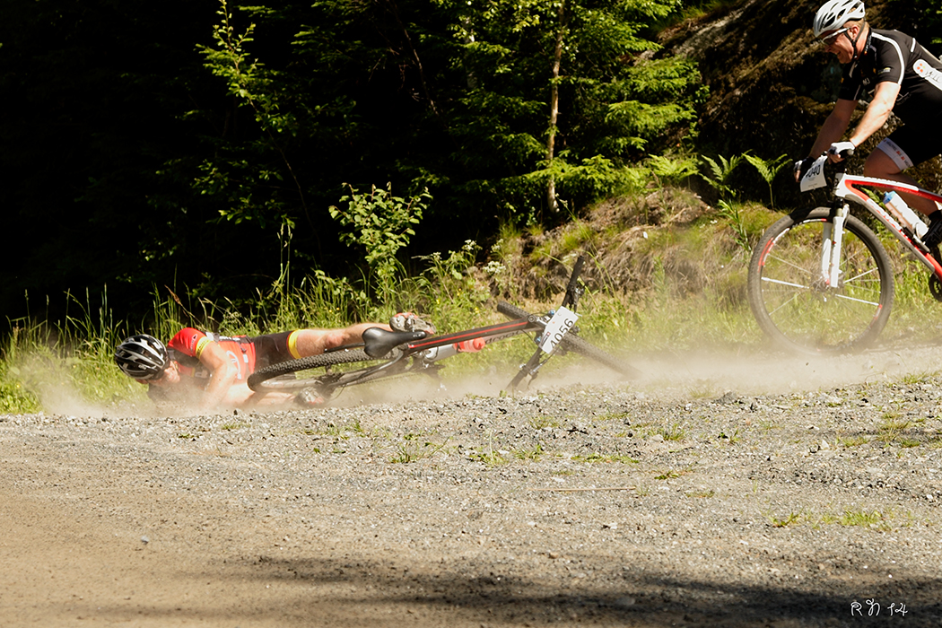 Ikke alle holdt seg på rett kjøl, men det gikk heldigvis bra og deltageren syklet videre.