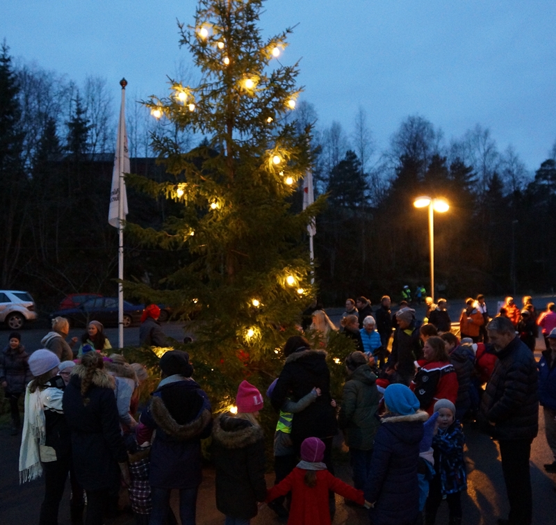 I dag, 1. søndag i advent ble julegrana tent. Langangen Musikkorps spilte kjente og kjære julesanger før lysene ble tent.