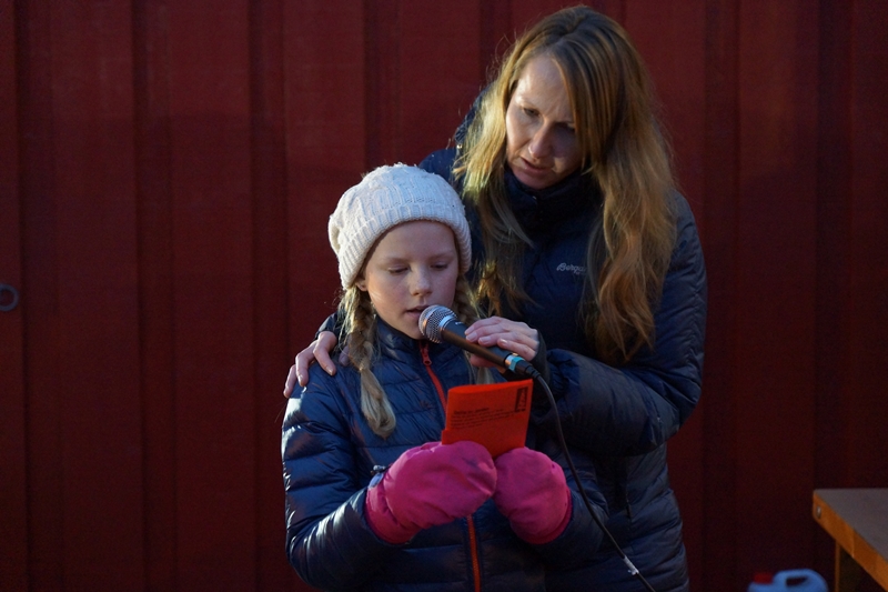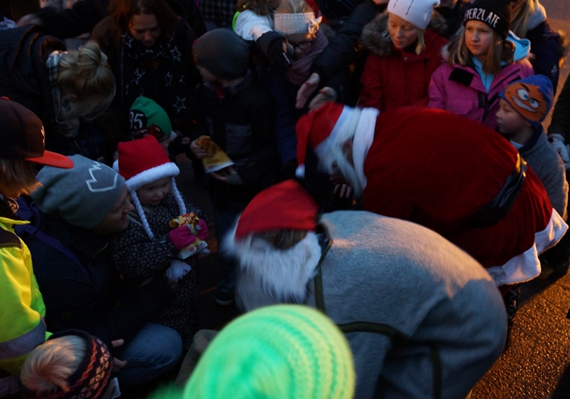 Det var gang rundt juletreet før Langangsnissene dukka opp med velfylte godteposer til alle barna. Etter arrangementet ved butikken var det fakkeltog opp til Langangen kirke.