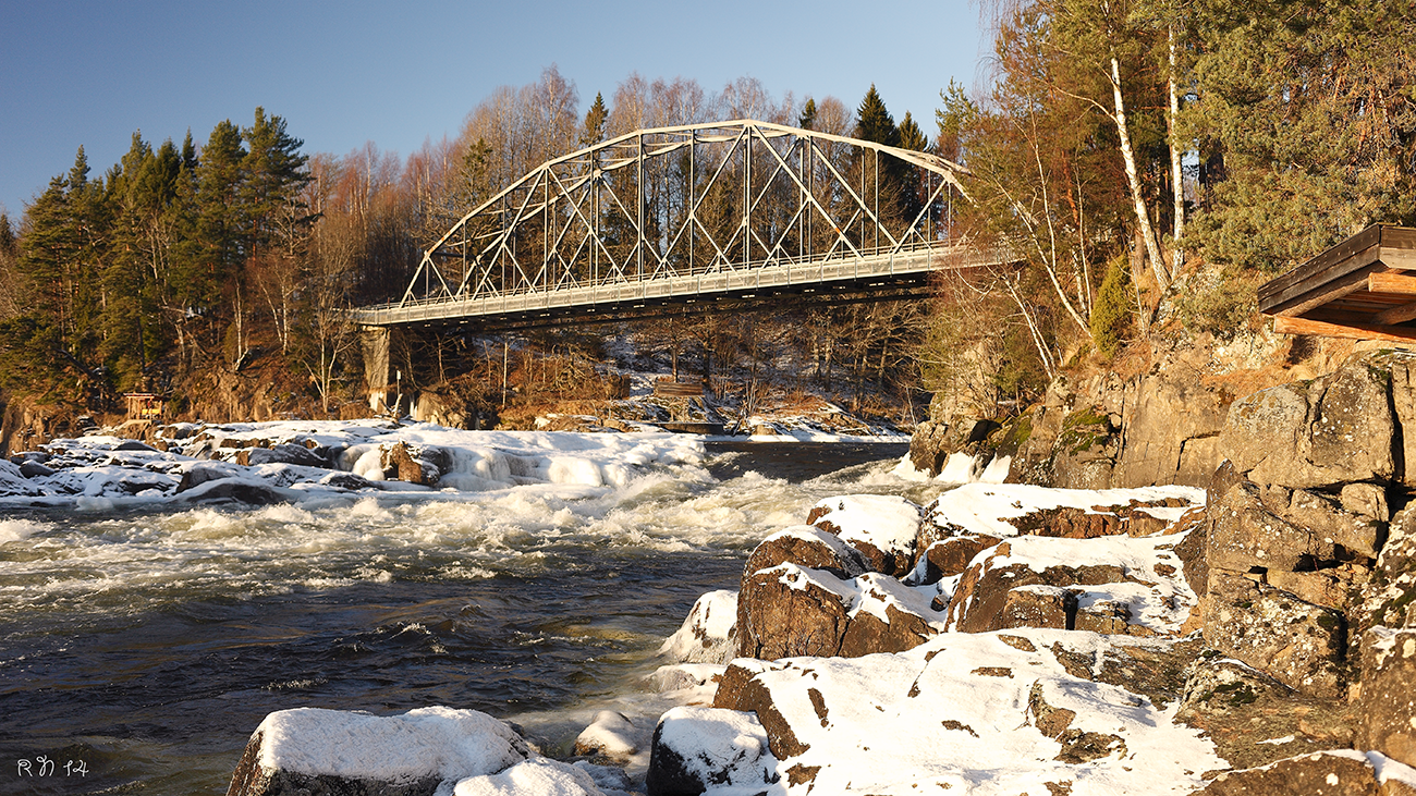 Utallige er bildene som er tatt i Holmsfoss gjennom årene og til alle årstider. På den siste dagen i 2014 viste Holmsfoss seg fram vinterlig og staselig. Ja da er det bare 5 måneder igjen til laksefiskerne igjen inntar fossen i håp om å få en riktig storing på kroken.