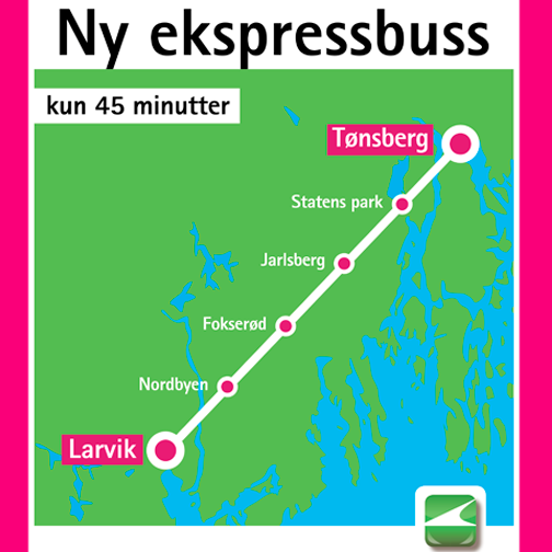 Fra 12. januar tar vi deg direkte fra Larvik til Tønsberg på kun 45 minutter. Med linje 011 Ekspress Larvik – Tønsberg sparer du både tid og bompenger på å la bilen stå.