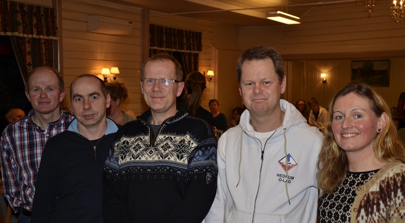 Styret i Hedrum O-lag fra venstre: Sportslig leder Anders Kristian Holt, kasserer Espen Johnsen, kartleder Tom Aasrum, leder Roger Lysnes og sekretær Liv Kristin Lian Aasestad.