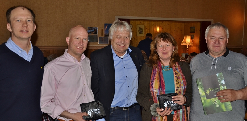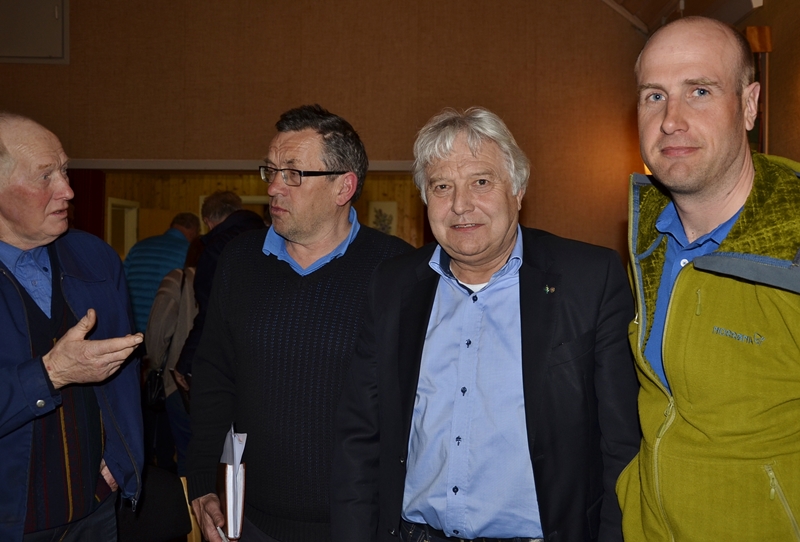 Skogeier Lars Larsen Rånerød til venstre diskuterer med mangeårig skogbruksleder Tom Horntvedt. Leder i Viken Skog Olav Breivik og ny skogbruksleder i Nedre Lågen Einar Idland gjør sitt til at Viken Skog skal være skogeiernes førstevalg. Virksomhetsideen er å omsette skogsvirke og gjøre det enklere for andelseierne å eie og forvalte sin skog.