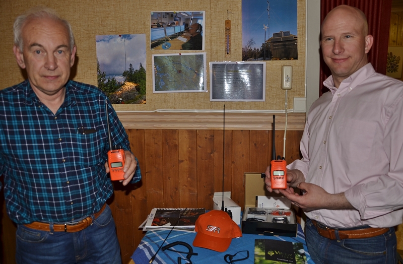 Ole Petter Skjerven til venstre i bildet fra Lardal, Siljan og Larvik Sikringsradiolag viser fram SRADIOEN. Skjerven kan fortelle at virkeligheten i mange skog- og utmarksområder mangler mulighet for kommunikasjon med omverdenen. Det er både utrygt og upraktisk. SRADIOEN har en nødknapp som kan sette deg i kontakt med en vaktsentral dersom uhellet er ute. Nødmelding går via sambandets basestasjoner og flere av disse er knytta opp mot en 110-sentral eller en brannstasjon.