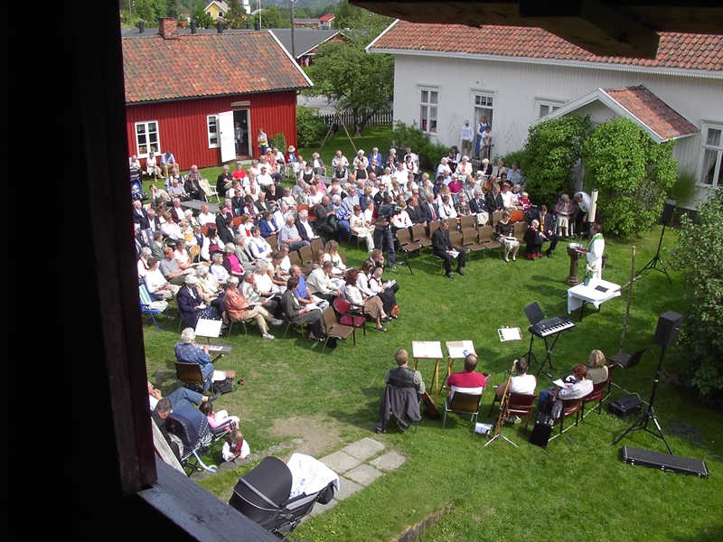 Gudstjeneste og barnedåp på Tunet: Bygdetunet i Kvelde er ei fin ramme for både gudstjenester og andre arrangementer. Foto: Tor Bjørvik