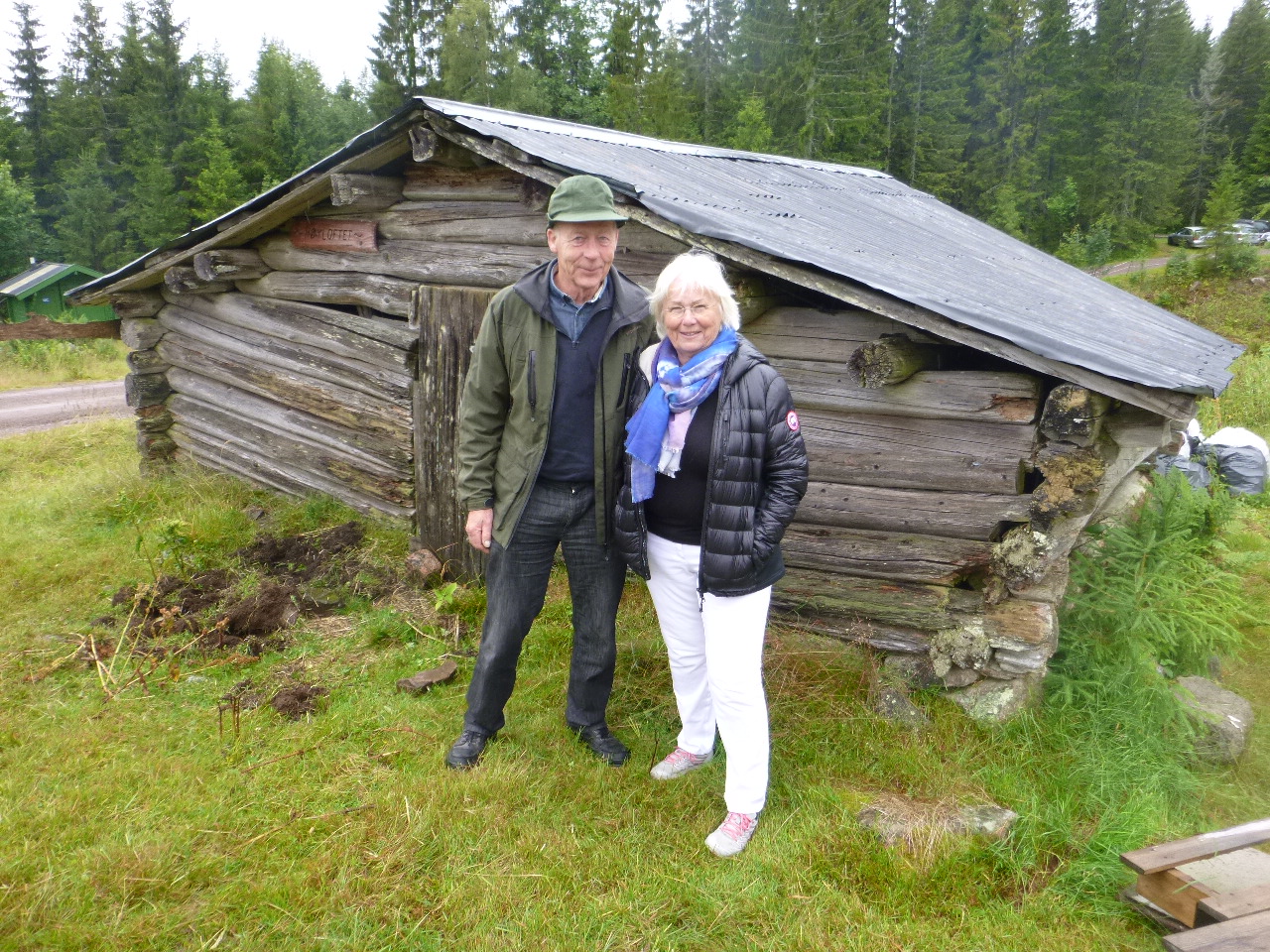 Søndag var det restaurering av gamle hus som var tema på Nordgardsetra. Else «Sprossa» Rønnevig, kjent bygningsverner fra Sørlandet, holdt foredrag. Her står hun sammen med en lokal bygningskyndig, byggmester Helge Røsholt fra Styrvoll. Det gamle fjøset i bakgrunnen er det eldste på Nordgardsetra. Sprossa mente at det kunne restaureres. En må da ta det helt ned og lafte det opp igjen. Nytt tømmer må skjøtes inn der det gamle er for dårlig.