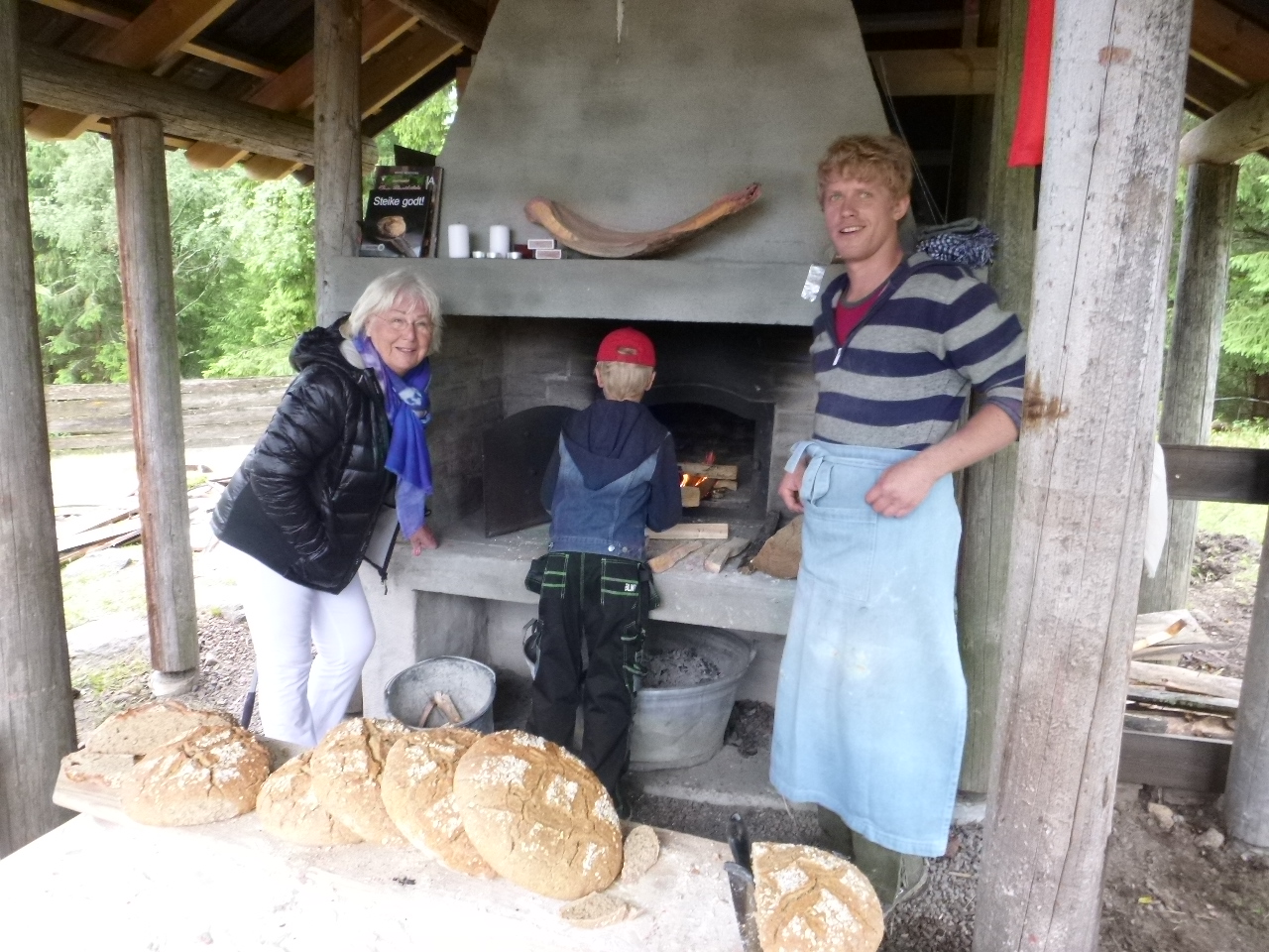 Bakerovnen på Nordgardsetra fungerer godt, og er i stadig bruk. Mesterbaker Håkon Seiertun står til høyre. Til venstre bakerovnspesialist Else «Sprossa» Rønnevig.