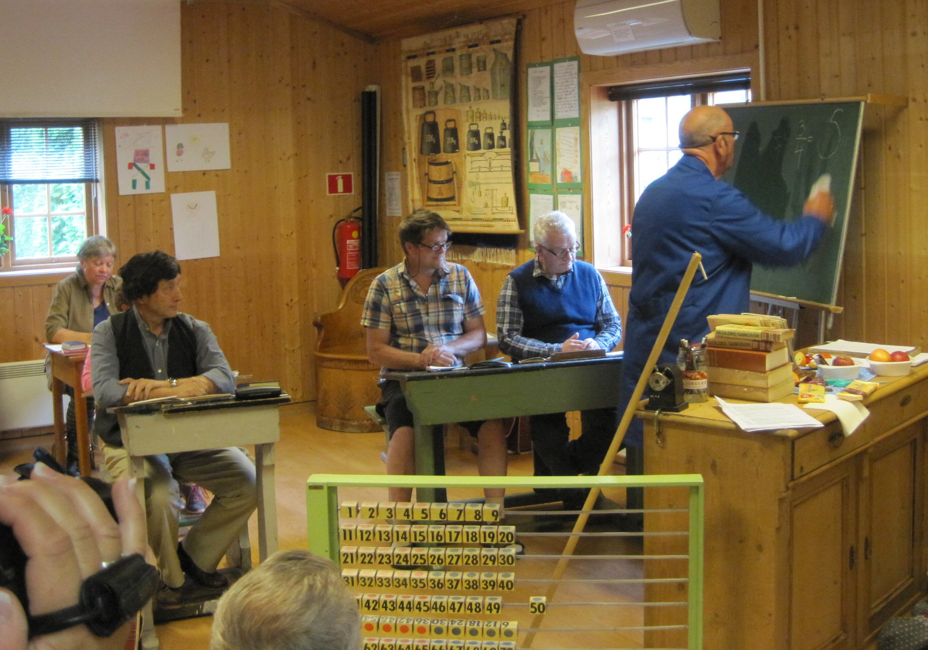 Ca 150 mennesker trossa det dårlige sommerværet og hygga seg på Hedrum med et underfundig og flott spill om skolen for 50 år siden. Egil Hem bar en både myndig og omsorgsfull skolemester, og elvene var nok litt begge deler. Vi fikk med skoledagens start, med den obligatoriske salmen og bibelhistorien med skapelsen. Rregning med brøk kunne bli litt vrient for unge hoder, som hadde mye annet å tenke på. Skammekroken måtte tas i bruk når lærerens myndige formaninger ikke strakk til. Vi fikk også servert morsomme historier når John Grimholt lokka fram elevenes egne minner fra skoletida.