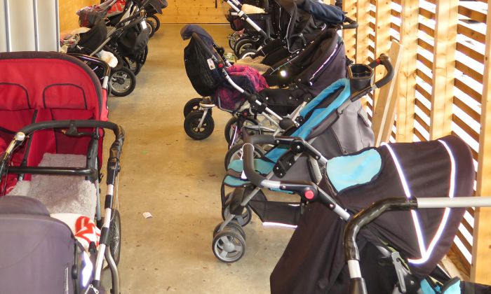 Også i barnehagene er det viktig at vognene oppbevares slik at de rekker å tørke i løpet av natta.