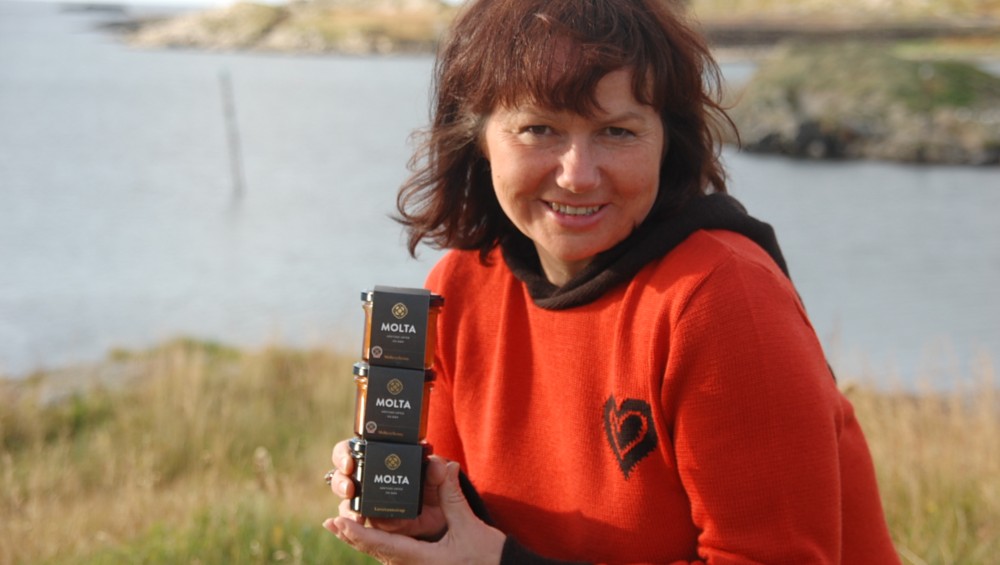 – En bronseplass er gull for oss, sier en storfornøyd Molta-gründer og eier Siss Heidi Hansen. Hun har allerede høstet flere gode tilbakemeldinger på det nye designet. Særlig gleder hun seg over en økende etterspørsel etter de eksklusive molteproduktene hun høster og lager på Rolfsøy i Måsøy ytterst på Finnmarkskysten mellom Hammerfest og Nordkapp.