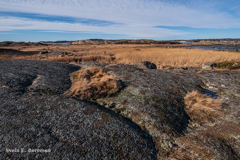 Selv om vinden kan være sur, er det likevel tegn som forteller om vår. Enkelte fugler har ankommet og selv har jeg sett flere. Når den sure vinden stilner er det godt å sitte ute på svabergene, å suge inn de første tegn på en lysere årstid.