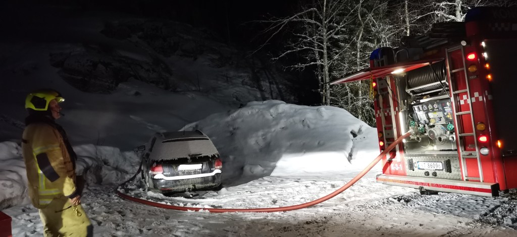 Branntilløpet under kontroll av Hvittingfoss Brannvesen. Foto: Jan E. Thorstein