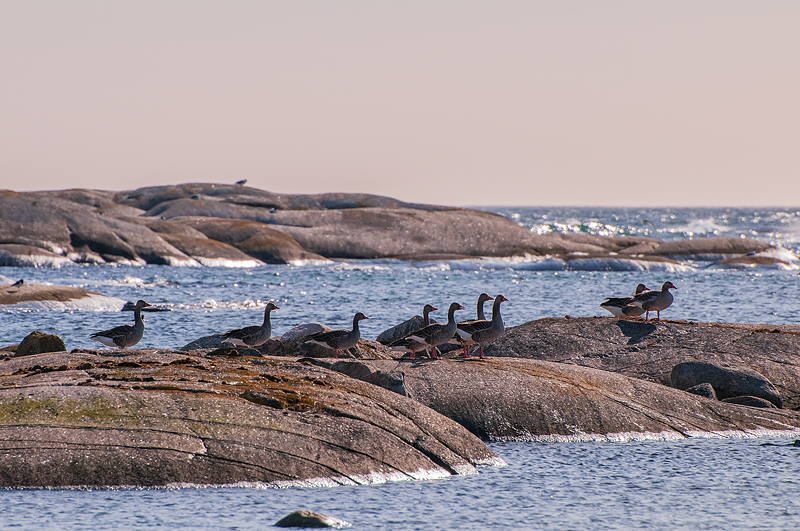 Men det var ikke vannet som interesserte gjessene. Det var selvfølgelig ertene. Og de riktig storkoste seg der ute i matfatet. At en slik flokk kan spise en erteåker ren bør ingen tvile på. Jeg synes oppriktig synd på bønder som får avlingene sine ødelagte på denne måten.