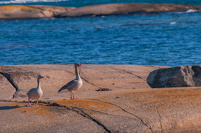Ute på strender og svaberg ligger også ekskrementene i dynger. Gressbakker, sandstrender og svaberg kan knapt brukes av badegjester der gjess oppholder seg. Og det blir ille når små barn leker i sanden og i vannkanten. Enkelte steder kan dem rett og slett ikke gjøre det på grunn av ekskrementene.