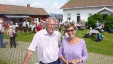 Hedrum bygdetun er en populær møteplass i Lågendalen. Søndag ble det både laks og god gammel Lågendalsmusikk på de ca 200 frammøtte.