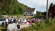 Sommerværet viste seg fra sin beste side da 120 mennesker var med Hedrum historielag på tur til Komma, denne ensomme Treschowgården nord i Farris. Mange av de som kom, hadde røttene sine i Farrisbygda, og det ble mye gjensynsglede.
